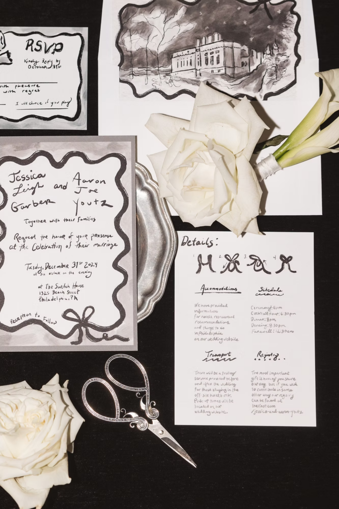 I rang in 2025 capturing Jessica and Aaron’s gorgeous New Year’s Eve wedding at The Switch House, one of Cescaphe’s newest venues. Each detail of the day was so thoughtfully planned by the bride and groom – I really wanted to bring their romantic, editorial vision to life with their portraits. We decided on the Museum of Art, starting with a first look and finding the perfect spots for their photos around the iconic Philly landmark. Before ceremony, we headed to the venue and got some great shots on the rooftop with a view of the water. The night was a celebration of love and the start to a new year with dancing and champagne toasts with friends and family.