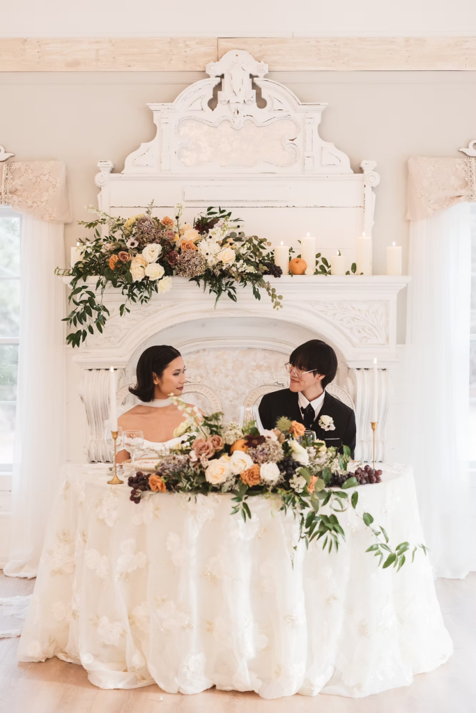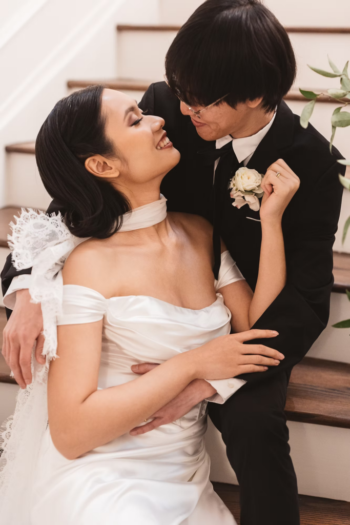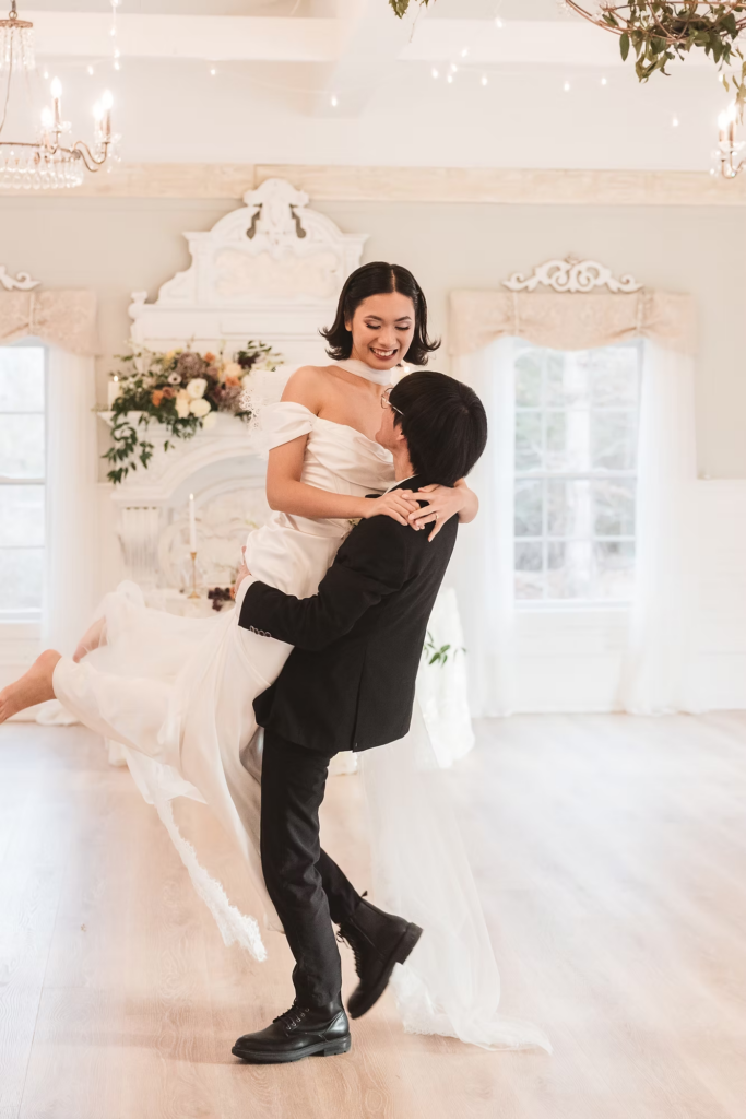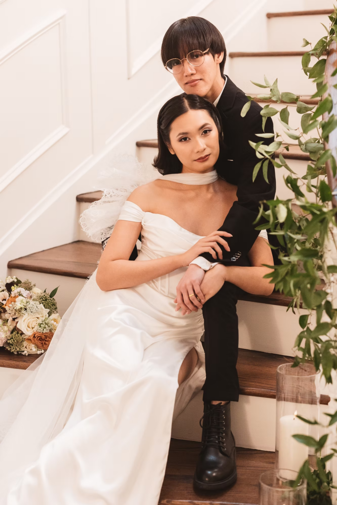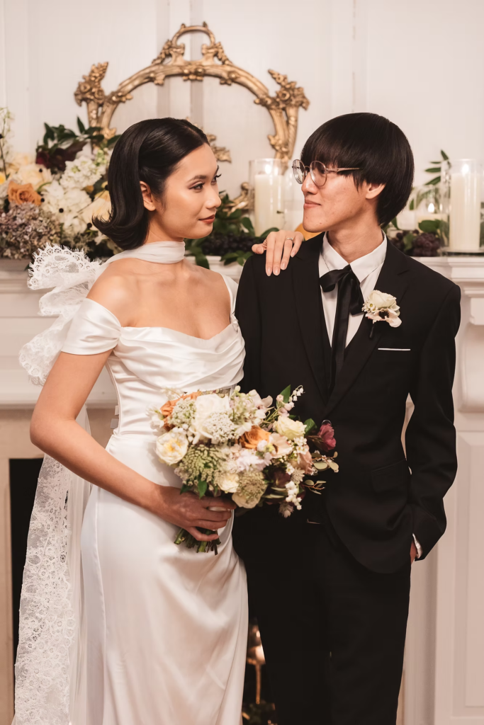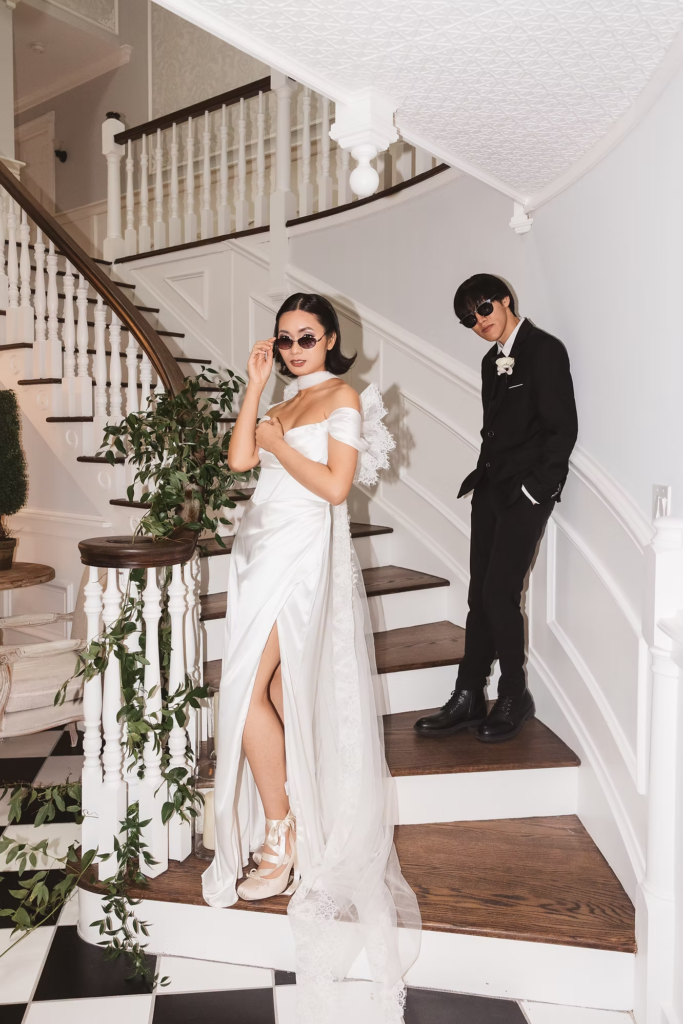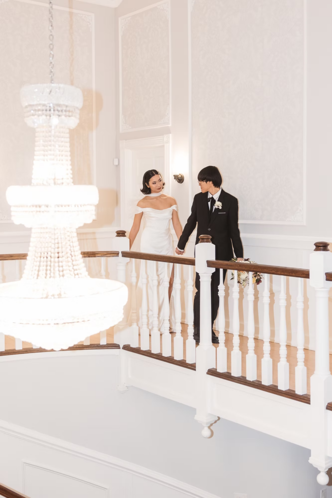 For the details, we opted for a cooler color palette to complement the overall feel of the Manor, and pulled it all together with the help of some wonderful local vendors. An angel wings scarf by Madison Chamberlain and fun blue cake by Cakes N’ Bakes are a few contributions that brought the vision to life. Florals and fruit were provided by Michelle herself, who doubles as venue owner and florist. Models Anna and Phyo were just perfect for creating these dreamy wedding portraits.