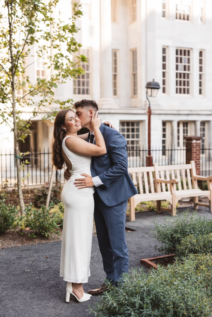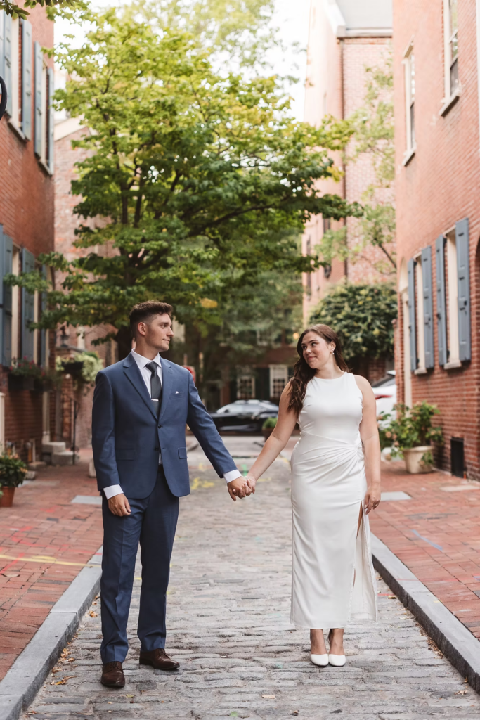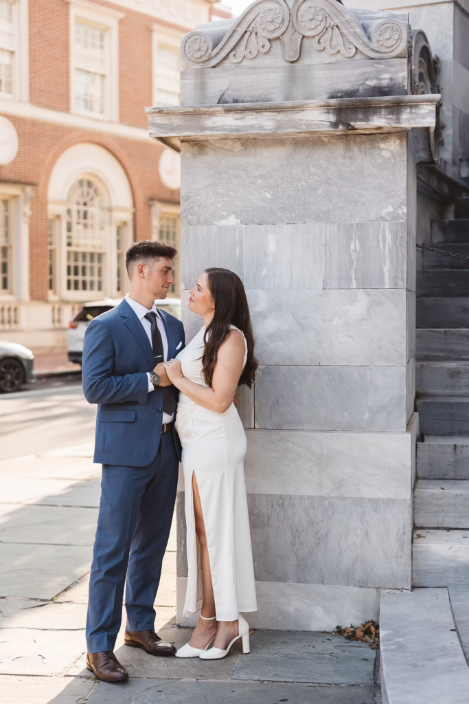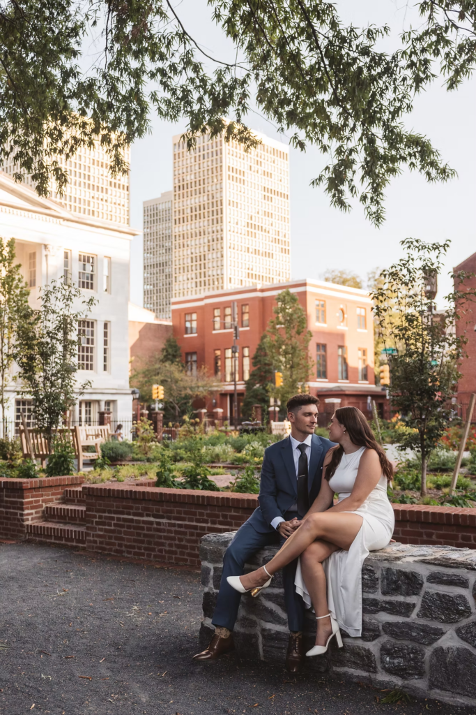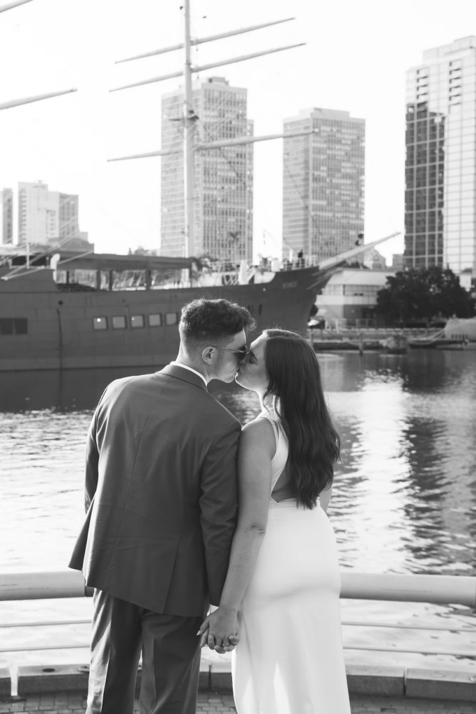 During the session, we made our way to landmarks like the Merchants’ Exchange Building and 18th Century Garden. We ended up by the waterfront, overlooking the iconic Moshulu, where Joe proposed to Kayleigh this past summer. Their portraits turned out so sweet, and Old City was the perfect backdrop for them.